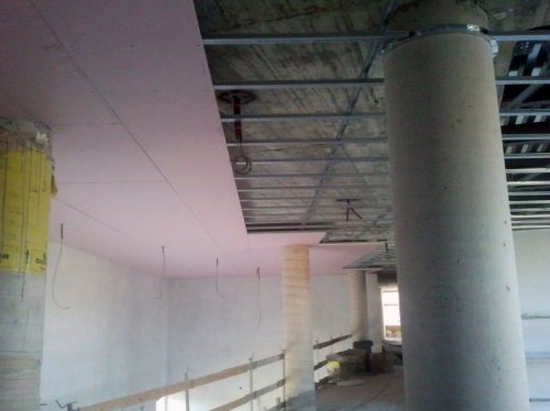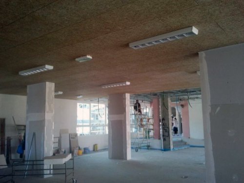 In particolare si sono realizzati circa 1200mq di controsoffitti REI in cartongesso, pareti divisorie e contropareti per complessivi 500mq, tutta una serie di velette e compartimentazioni REI a protezione dei pilastri e delle strutture.