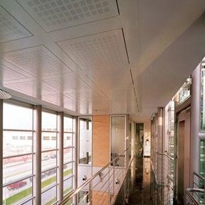 Allo scopo sono disponibili svariate forature che rendono il controsoffitto fonoassorbente in abbinamento a materiali acustici. Particolarmente indicato risulta il tessuto-nontessuto di colore nero che riduce i tempi di riverbero. |