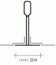 - profilati trasversali in lamierino d'acciaio zincato a forma di T rovesciata sezione 38x24mm e spessore 4/10mm, posti ad interasse di 600mm perpendicolarmente ai profilati dell'orditura metallica principale e ad essi fissati mediante innesti ad incastro;