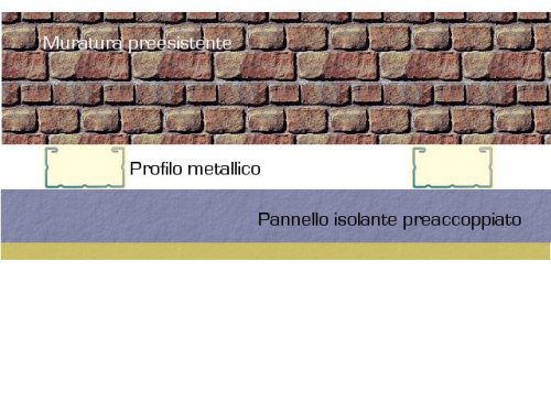-1 lastra LaserPlac BA13, di spessore 12.5 mm, a bordi assottigliati (BA), accoppiata con pannello isolante BASF NEOPOR spessore 6cm avvitata sull'orditura metallica mediante viti TF 3,5x80 fosfatate e autoperforanti.