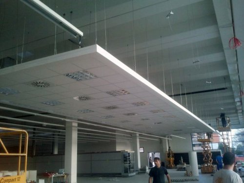Per la posa dei soffitti sono state realizzate delle isole sospese delimitate da velette in cartongesso di chiusura.