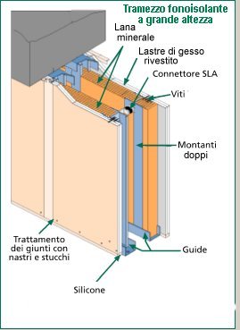| Parete dello spessore di 100 mm, costituito da 1 lastra LaserPlac BA13 per parte. |
