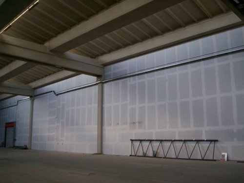 In un magazzino dell'interporto di BOLOGNA si sono riqualificate pareti esistenti con lastre in fibrosilicato di calce per l'ottenimento della classe A1 di reazione al fuoco e il REI 120.